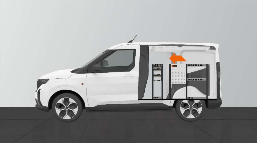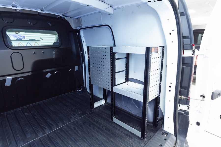 Voulez vous optimiser votre Ford Courier L1avec un aménagement supplémentaire ? Cet aménagement utilitaire vous permet de compléter votre espace de rangement tout en gardant un espace de chargement central maximal, grâce sa faible profondeur de seulement 260 mm. L’aménagement dispose de trois tiroirs de différentes tailles afin de varier les possibilités de rangement. Les tiroirs s’ouvrent facilement depuis la porte latérale coulissante et peuvent supporter une charge uniforme de 35 kg / tiroir. L’espace étagère derrière le bloc tiroir est idéal pour ranger vos mallettes, outils ou consommables mais peut aussi se compléter avec notre système de bacs de rangement sur rails.