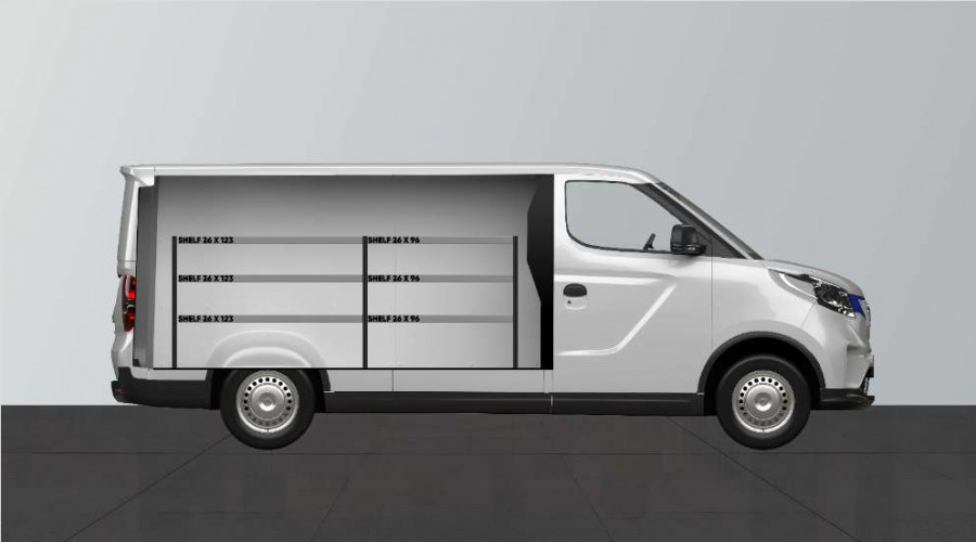 Un aménagement utilitaire pour ceux qui souhaitent conserver la largeur de leur Maxus e-Deliver 3 L2. L’aménagement fait 262,5 mm de profondeur et offre d’excellentes possibilités de rangement pour les articles de petite taille comme les boîtes de vis et les petits objets pour les professionnels du bâtiment, les électriciens, les plombiers et les chauffagistes. L’aménagement est adapté aux véhicules avec ou sans porte latérale et peut être complété par nos bacs modulaires. Une autre solution populaire consiste à compléter les panneaux perforés avec nos accessoires Smartbox et crochets pour optimiser l’espace de rangement.