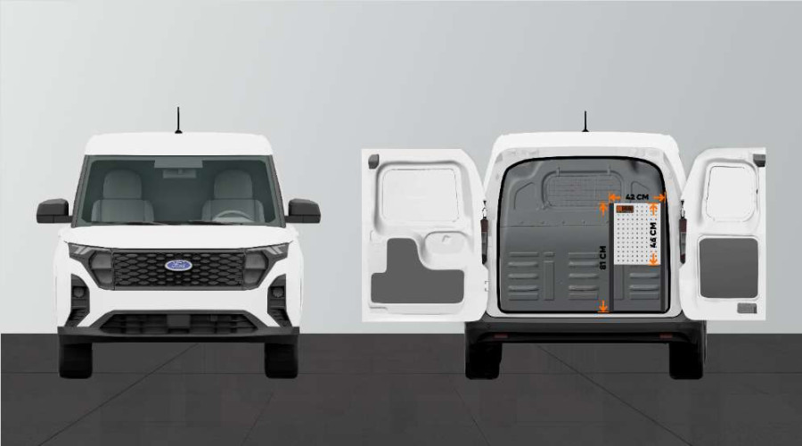 Aménagement utilitaire avec tiroirs facilement accessibles par la porte latérale de votre Ford Courier L1.