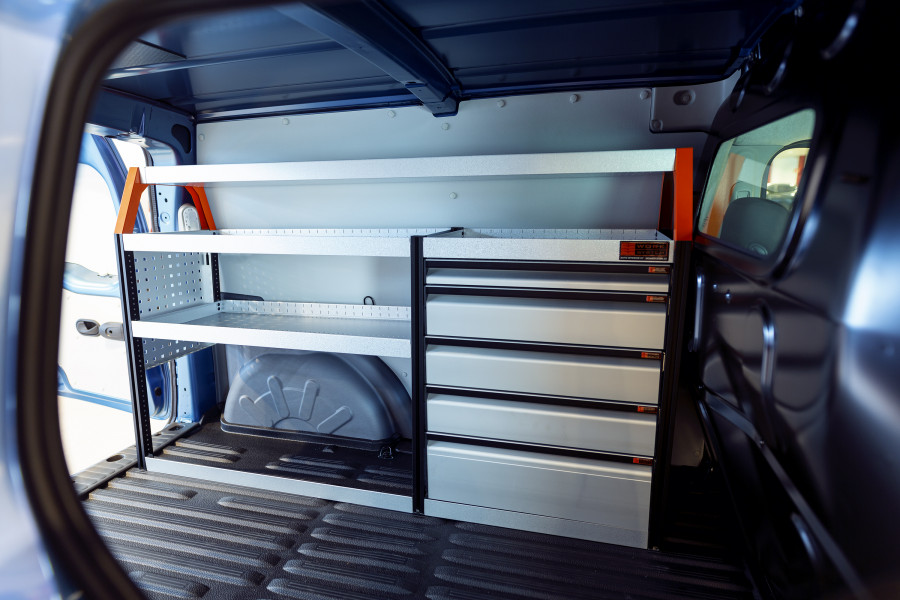 Grâce à ses tiroirs et étagères, cet aménagement utilitaire est très apprécié des conducteurs de Ford Connect L2