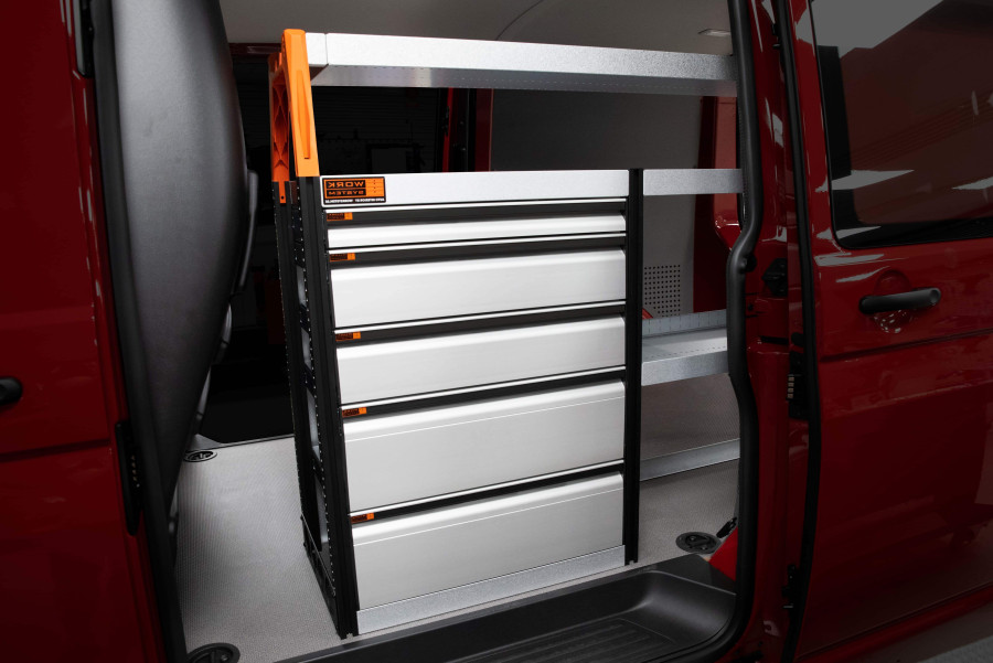 Grâce à ses tiroirs et étagères, cet aménagement utilitaire est très apprécié des conducteurs de Expert, Jumpy, Vivaro, Scudo & ProAce L2
