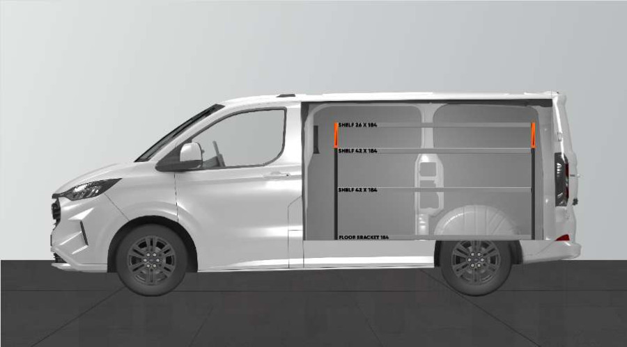 Avec une profondeur de 420 mm, cet aménagement offre d’excellentes possibilités de rangement pour votre Ford Custom & VW Transporter L1. Les étagères de 420 mm de profondeur permettent d’accueillir parfaitement la plupart des mallettes à outils actuellement disponibles sur le marché. L’étagère du haut de 262,5 mm est souvent combinée à nos bacs modulaires pour y ranger les petits objets. L’aménagement est adapté aux véhicules avec ou sans porte latérale et le panneau perforé latéral peut être équipé de nos accessoires Smartbox, crochets, etc.