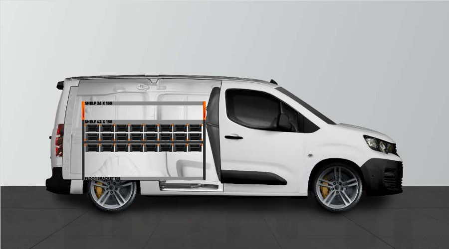 RACK est un aménagement utilitaire populaire pour votre Citroën Berlingo, Opel Combo, Fiat Doblo Toyota Proace City & Peugeot Partner L2. Il est parfait pour ceuXqui recherchent une solution de rangement optimale pour leur petit matériel tel que vis, raccords, boulons, forets etc. Aménagement optimisé avec 15 bacs modulaires extensibles sur rails facilement accessibles. L’avant des bacs peut être assorti d’une fenêtre transparente. A l’intérieur du bac des séparateurs peuvent être placés tous les 60 mm.