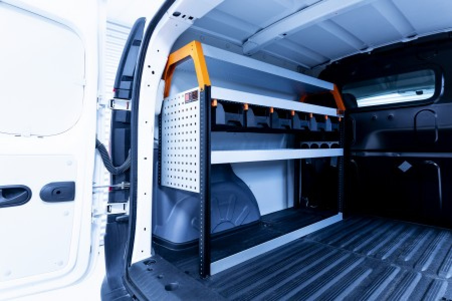 Un aménagement utilitaire conçu pour ceux décidés dès le départ à garder leurs Kangoo Citan Townstar L1 bien organisés et bien rangés. Il est équipé de six de nos nouveaux bacs modulaires intelligents que vous pouvez extraire facilement le long de rails prévus à cet effet. Vous pouvez également ajuster et déplacer ces bacs à votre gré le long des rayonnages. Vous disposez ainsi d’excellentes possibilités de rangement pour vos mallettes d’outils, votre outillage électroportatif et votre équipement, car les étagères ont une profondeur de 420 mm.