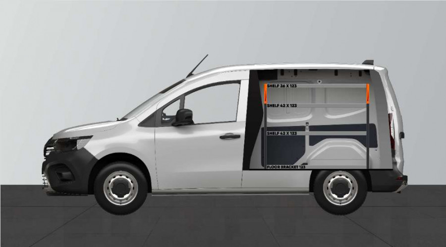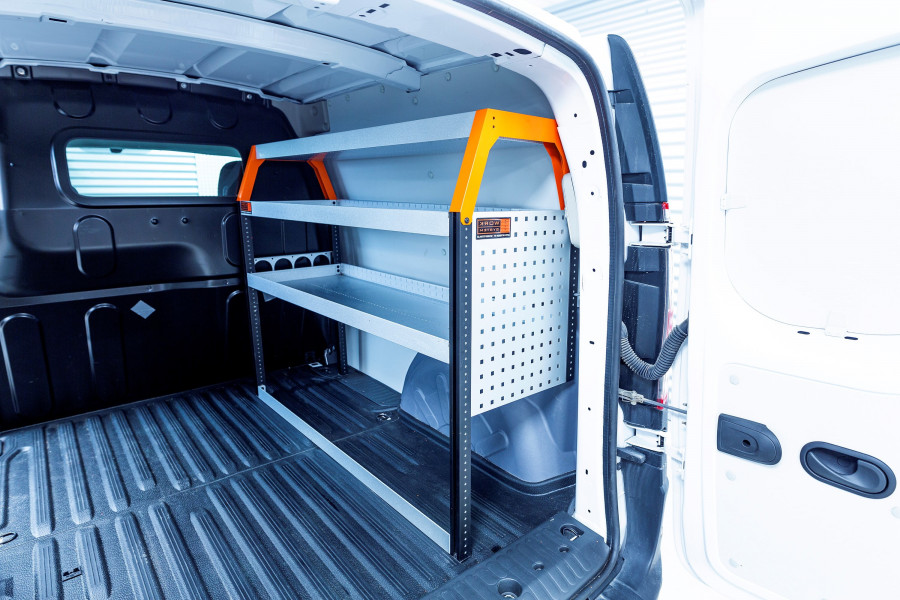 Avec une profondeur de 420 mm, cet aménagement offre d’excellentes possibilités de rangement pour votre Mercedes Citan, Renault Kangoo & Nissan Townstar L1. Les étagères de 420 mm de profondeur permettent d’accueillir parfaitement la plupart des mallettes à outils actuellement disponibles sur le marché. L’étagère du haut de 262,5 mm est souvent combinée à nos bacs modulaires pour y ranger les petits objets. L’aménagement est adapté aux véhicules avec ou sans porte latérale et le panneau perforé latéral peut être équipé de nos accessoires Smartbox, crochets, etc.
