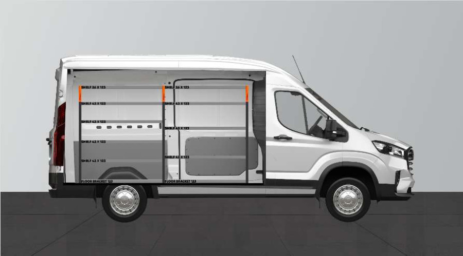 L’aménagement BASE42 vous offre un excellent espace de rangement pour votre Maxus e-Deliver9 L2.