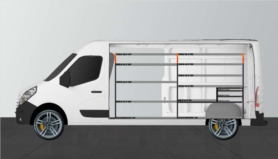 Voici l’un de nos aménagements utilitaires les plus appréciés des conducteurs de Opel Movano, Renault Master & Nissan NV400 L3. L’aménagement LS3 est utilisé tant par les professionnels du bâtiment que par les techniciens SAV, les électriciens, les plombiers, les chauffagistes et les menuisiers. L’aménagement offre d’excellentes possibilités de rangement pour les mallettes à outils, les machines, les consommables ainsi que pour les petits objets. Les tiroirs peuvent être complétés par nos inserts à tiroir et le panneau perforé latéral peut être équipé de nos accessoires Smartbox, crochets, etc.