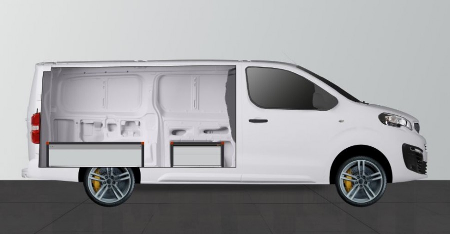 Le double plancher convient au Peugeot Expert L3, à l’Opel Vivaro L3 2020-, au Citroën Jumpy L3, au Fiat Scudo et au Toyota ProAce Long.