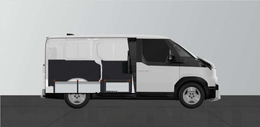 Double plancher, H : 342 mm, 3 tiroirs pour KIA PV5 L2 avec paroi Standard confort