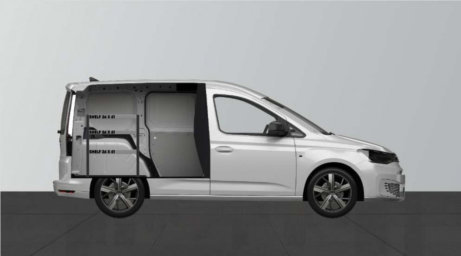 Das SHORT26 Fahrzeugregal ist das Einstiegmodell für Ihren VW Caddy Cargo & Ford Connect L1.