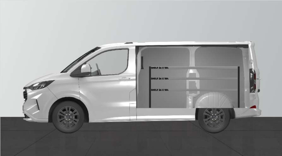 Das BASE26 Fahrzeugregal ist das Einstiegmodell für Ihren Ford Custom & VW Transporter L1.