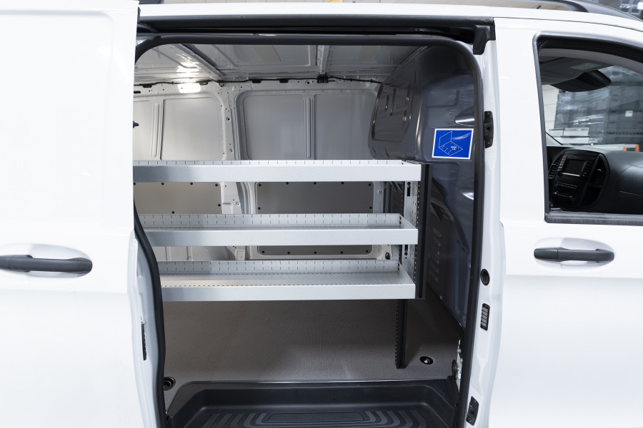 Eine Fahrzeugeinrichtung für alle, die die Breite ihres Maxus e-Deliver 3 L1 beibehalten möchten. Die Einrichtung hat eine Tiefe von nur 262,5 mm und bietet gute Aufbewahrungsmöglichkeiten für Kleinteile, z. B. Schraubenpackungen und kleinere Artikel, geeignet für Hausmeister, Elektriker und Heizungs- und Sanitärinstallateure. Es besteht die Möglichkeit, die Einrichtung durch unsere cleveren Modulboxen zu ergänzen. An den Regalwänden lässt sich durch unsere Smartboxen zusätzliche Staufläche gewinnen.