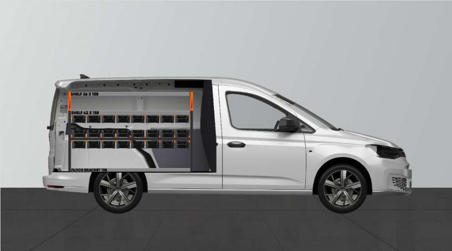 RACK ist eine neue, branchenführende Fahrzeugeinrichtung für den VW Caddy Cargo & Ford Connect L2. Sie eignet sich perfekt für alle, die eine gute Aufbewahrungsmöglichkeit für ihr Sortiment benötigen, z. B. Schrauben, Kupplungen, Bolzen, Bohrer usw. Die Einrichtung wurde um insgesamt 24 unserer neuen unterteilbaren Modulboxen erweitert. Die Modulboxen werden auf fest montierten Schienen herausgezogen, was einen einfachen Zugang ermöglicht. Die Front der Modulboxen ist so konzipiert, dass sie optimale Zugänglichkeit bietet. Die Kästen können durch ein transparentes Fenster und Querzwischenwände ergänzt werden, die alle 60 mm eingeschoben werden können.