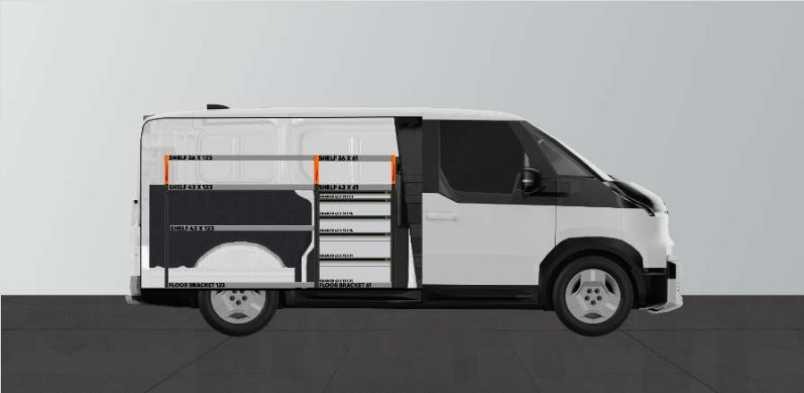 Dies ist eines der beliebtesten Systeme für den KIA PV5 L2H1. Die Einrichtung bietet gute Aufbewahrungsmöglichkeiten für Werkzeugtaschen/-koffer, Maschinen und Kleinteile. Sie umfasst eine Schubladeneinheit mit 5 Schubladen in verschiedenen Größen, damit jedes Teil der Ausrüstung seinen Platz erhält. Die Schubladen auf Kugellagerschienen werden häufig durch unsere neuen Schubladeneinsätze und Trennwände ergänzt, um maximale Ordnung und Übersichtlichkeit zu gewährleisten. Die Ergänzung der Regalwand durch unsere Smartboxen ist ebenfalls eine beliebte Alternative, um den Stauraum zu maximieren.