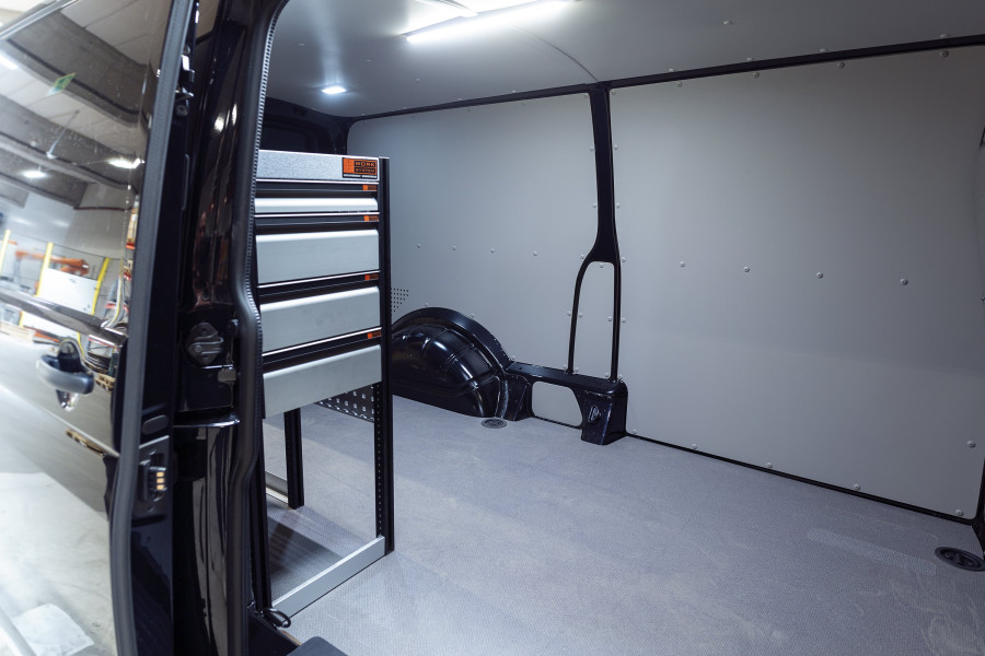 Eines der beliebstesten Fahrzeugregel für Ihren Kia PV5 L2H1. Die Einrichtung bietet vielfältige Aufbewahrungsmöglichkeiten, da die Schubladen auf Kugellagerschienen einen einfachen Zugang über die Seitentür bieten; die Schubladen können in Fahrtrichtung herausgezogen werden, um eine gute Übersichtlichkeit zu bieten. Die Schubladen können um Trennwände ergänzt werden, um mehr Ordnung und Struktur beim Kleinteilsortiment zu schaffen. Unsere tiefen Regalböden bieten außerdem gute Aufbewahrungsmöglichkeiten für Werkzeugtaschen/-koffer und kleinere Maschinen. Das verteilte Ladegewicht in den Schubladen der Kugellagerschienen beträgt 35 kg/St. Die Schubladen-Innenmaße sind B: 308, T: 387, H: 60 und H: 130 (mm).
