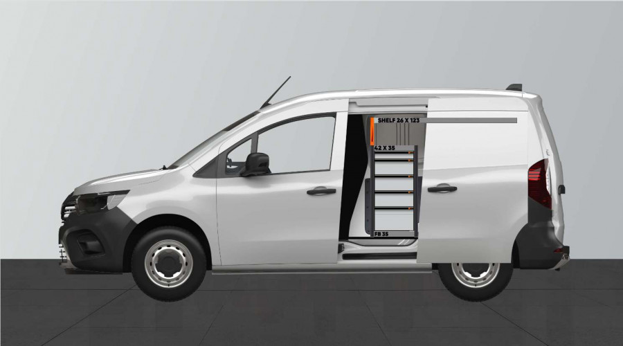 Dies ist eines der beliebtesten Systeme für den Mercedes Citan, Renault Kangoo & Nissan Townstar L1 mit Seitentür auf der Seite der Einrichtung. Die Einrichtung bietet gute Aufbewahrungsmöglichkeiten für Werkzeugtaschen/-koffer, Maschinen und Kleinteile. Sie umfasst eine Schubladeneinheit mit 5 Schubladen in verschiedenen Größen, damit jeder Ausrüstungsgegenstand seinen Platz erhält. Hinter den Schubladen befindet sich eine Werkzeugtafel, die zusätzliche Aufhängungsmöglichkeiten im Fahrzeug bietet. Die Schubladen auf Kugellagerschienen werden häufig durch unsere neuen Schubladeneinsätze und Trennwände ergänzt, um maximale Ordnung und Übersichtlichkeit zu gewährleisten. Die Regalwand wird gerne auch durch unsere Smartboxen ergänzt, um den Stauraum zu maximieren.