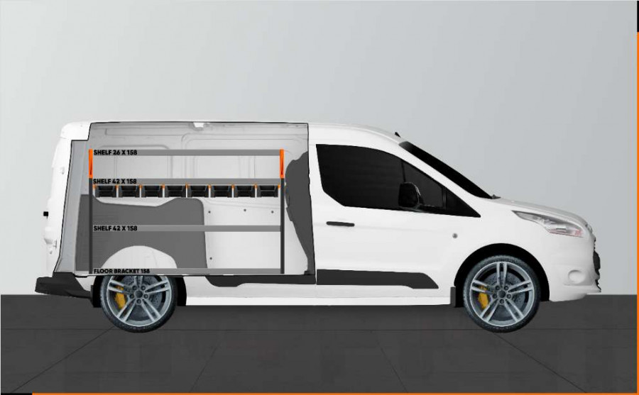 Eine Fahrzeugeinrichtung für alle, die von Anfang an für maximale Ordnung in ihrem Ford Connect L2 sorgen wollen. Diese Einrichtung umfasst 8 unserer cleveren Modulboxen. Diese lassen sich problemlos durch unseren Modulboxschienen unter den Regalböden befestigen und sind herausziehbar. Ein Entnehmen der kompletten Box ist ebenfalls möglich. Dank einer Tiefe von 420 mm bieten diese Regale natürlich auch gute Aufbewahrungsmöglichkeiten für Ihre Werkzeugtaschen/-koffer, Maschinen und Materialien.