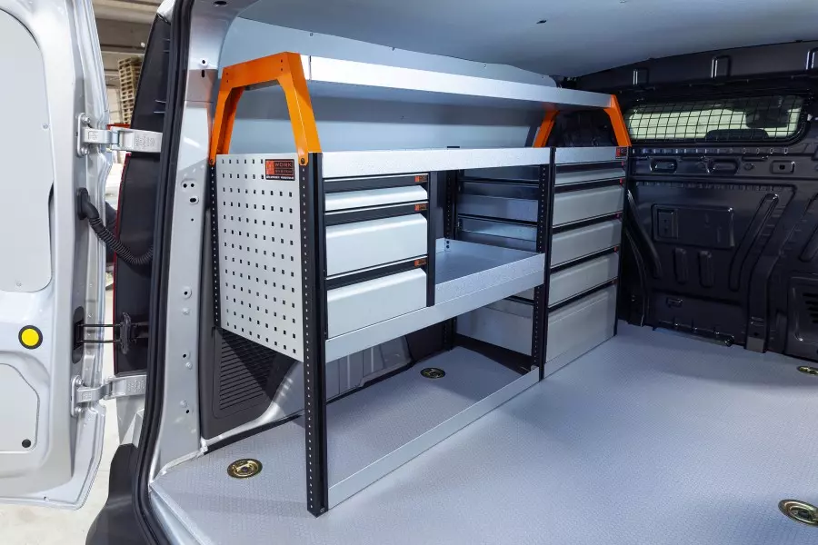 Diese Einrichtung für den Ford Connect L2 eignet sich für alle, die eine sehr flexible Einrichtung suchen. Insgesamt erhalten Sie 8 Schubladen auf Kugellagerschienen. Die Einrichtung bietet gute Aufbewahrungsmöglichkeiten für Werkzeugtaschen/-koffer, Maschinen und Kleinteile. Sie erhalten eine Schubladeneinheit mit Schubladen in verschiedenen Größen, damit jeder Gegenstand seinen Platz erhält. Die Schubladen werden häufig durch unsere Schubladeneinsätze und Trennwände ergänzt, um maximale Ordnung und Übersichtlichkeit zu gewährleisten.
