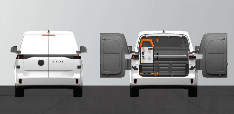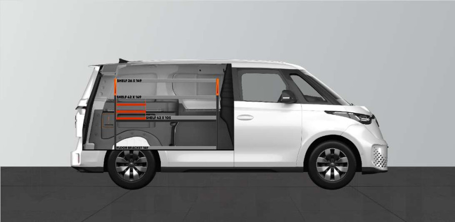 Fahrzeugeinrichtung für alle, die Sortimentskästen in einem Volkswagen ID Buzz L1 verwenden.