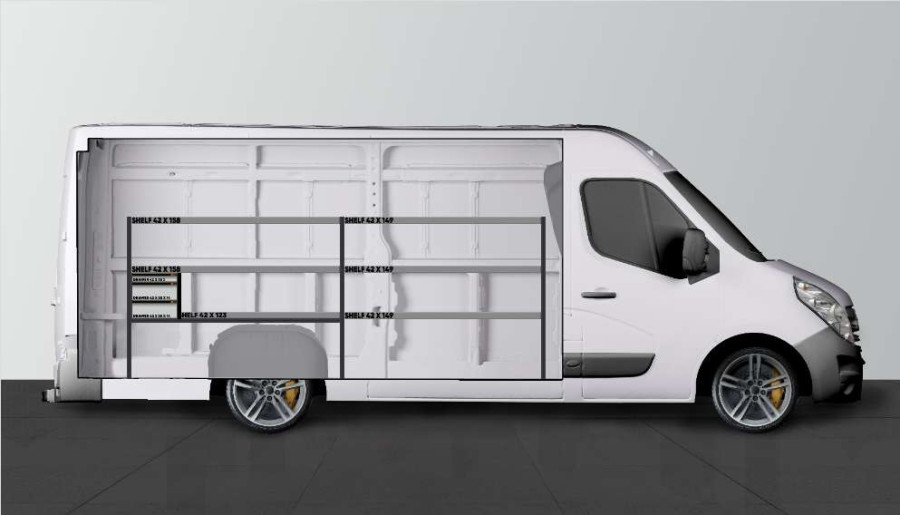 Eine einfachere Lösung unserer beliebten Fahrzeugeinrichtung mit Schubladen und Regalen für Movano, Master & NV400 L3.