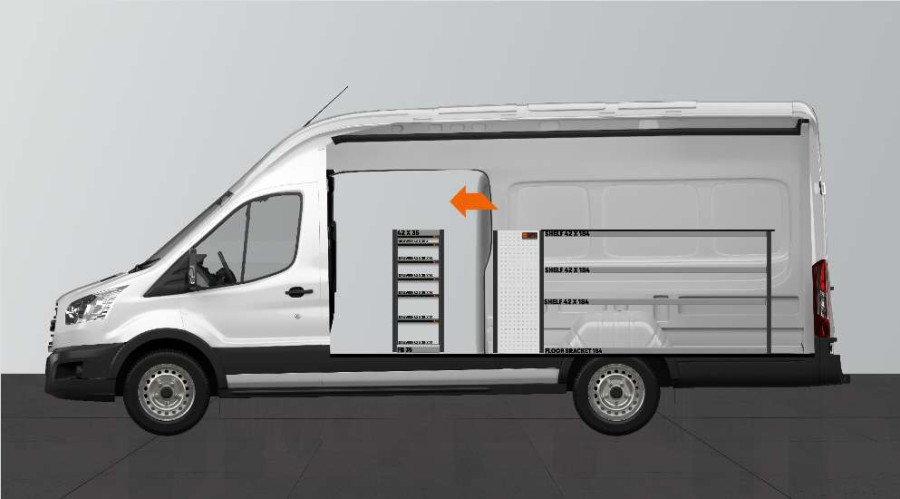 Wenn Sie eine Werkbank in Ihrem Ford Transit L4H3 benötigen, ist diese Einrichtung eine flexible Kombination aus Regalfächern und herausziehbaren Schubladen, die Sie bequem von der Seitentür Ihres Fahrzeugs aus erreichen können. Die Werkbank besteht aus 12 mm starkem Kompaktlaminat, das sehr hart und strapazierfähig ist.
