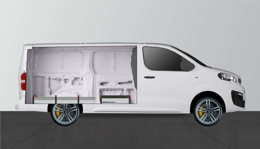 Das Unterflursystem ist geeignet für Peugeot Expert L3, Opel Vivaro L3 2020, Citroën Jumpy L3 & Toyota Long mit Standard-Komfortwand.