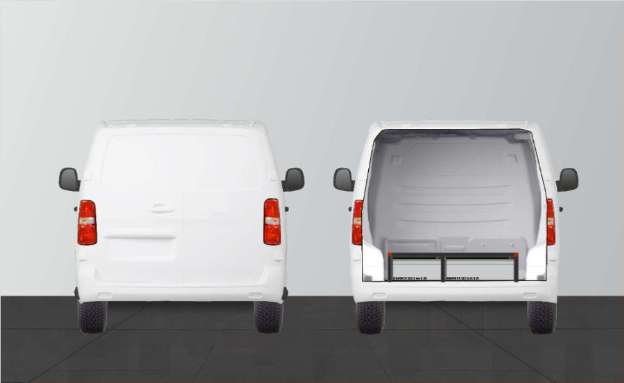 Das Unterflursystem ist geeignet für Peugeot Expert L2, Opel Vivaro L2 2020, Citroën Jumpy L2 & Toyota Medium mit Standard-Komfortwand.